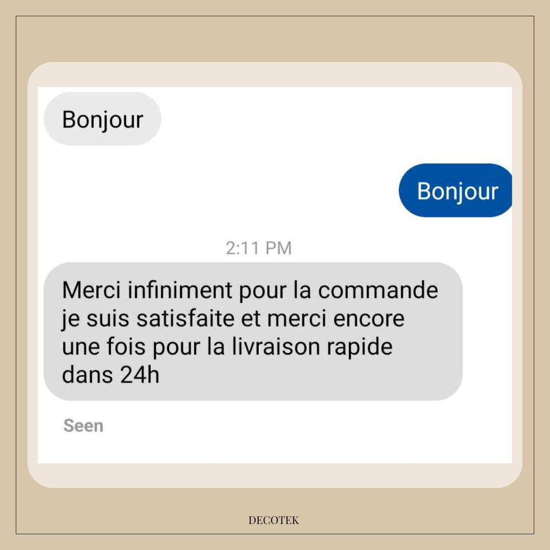 R : Nous expédions toutes les commandes passées avant midi en Tunisie dans les 48 heures. La plupart des commandes sont livrées dans les 72 heures.